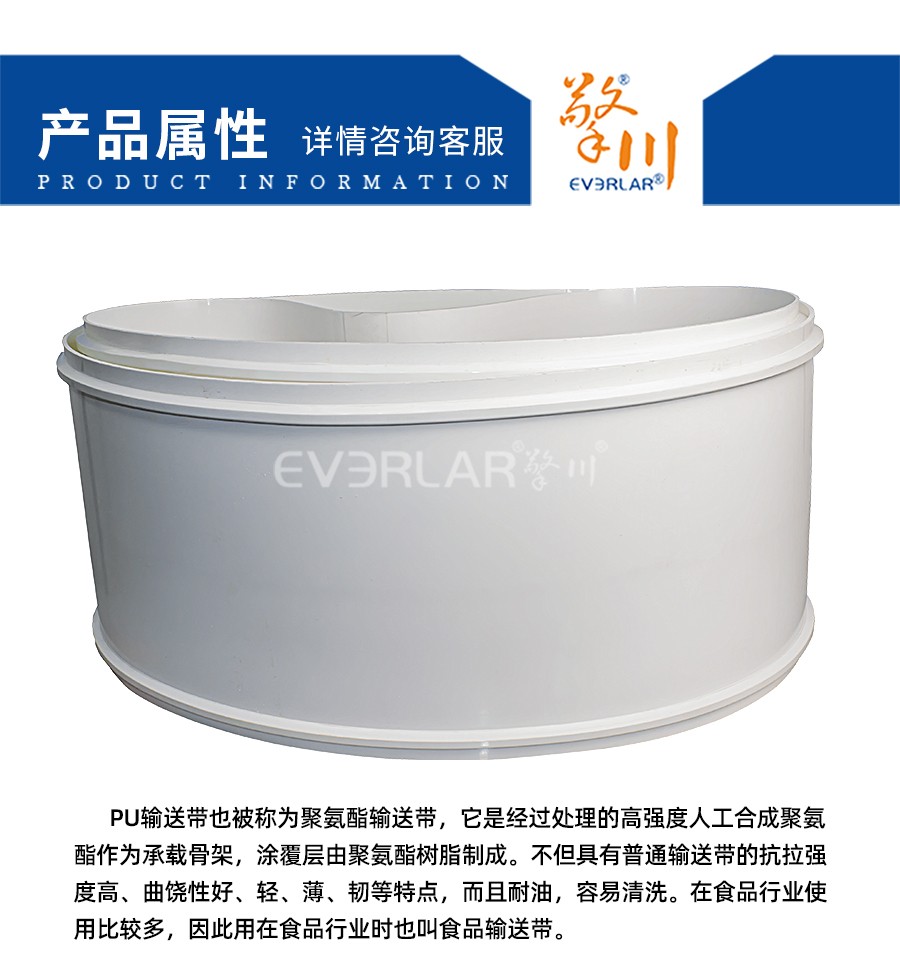 PU輸送帶也被稱為聚氨酯輸送帶,它是經(jīng)過處理的高強(qiáng)度人工合成聚氨酯作為承載骨架,涂覆層由聚氨酯樹脂制成。不但具有普通輸送帶的抗拉強(qiáng)度高、曲饒性好、輕、薄、韌等特點(diǎn),而且耐油,耐切割,容易清洗。在食品行業(yè)使用比較多,因此用在食品行業(yè)時也叫食品輸送帶。