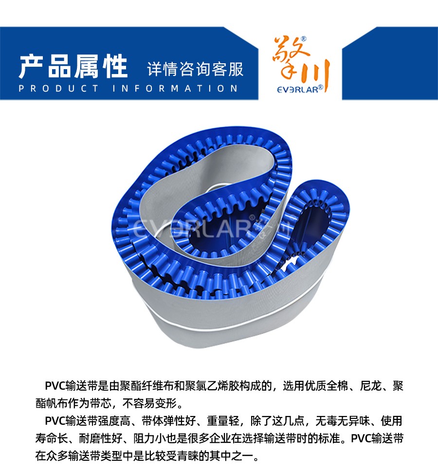 PVC輸送帶是由聚酯纖維布和聚氯乙烯膠構(gòu)成的,選用優(yōu)質(zhì)全棉、尼龍、聚酯帆布作為帶芯,不容易變形。
