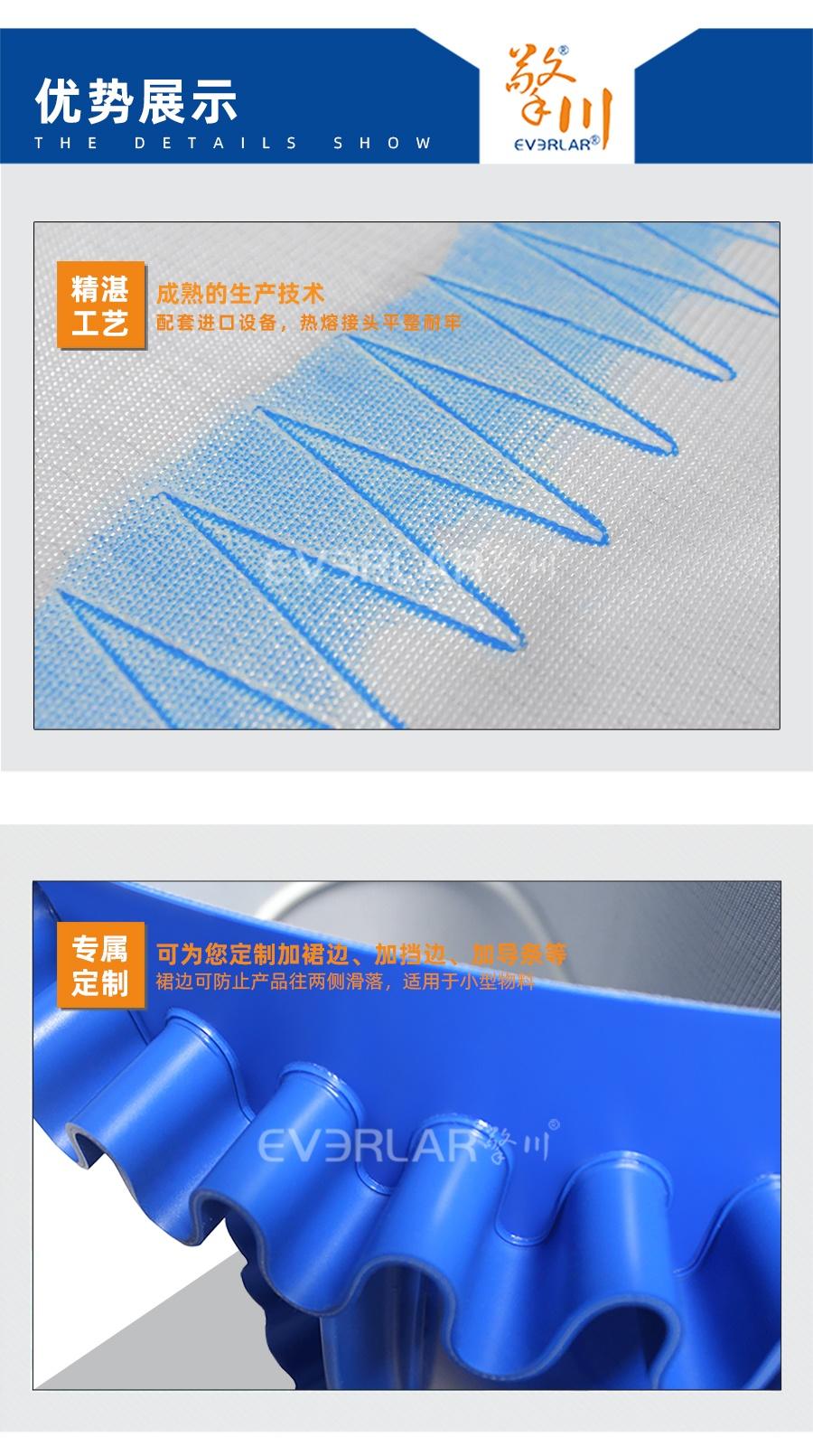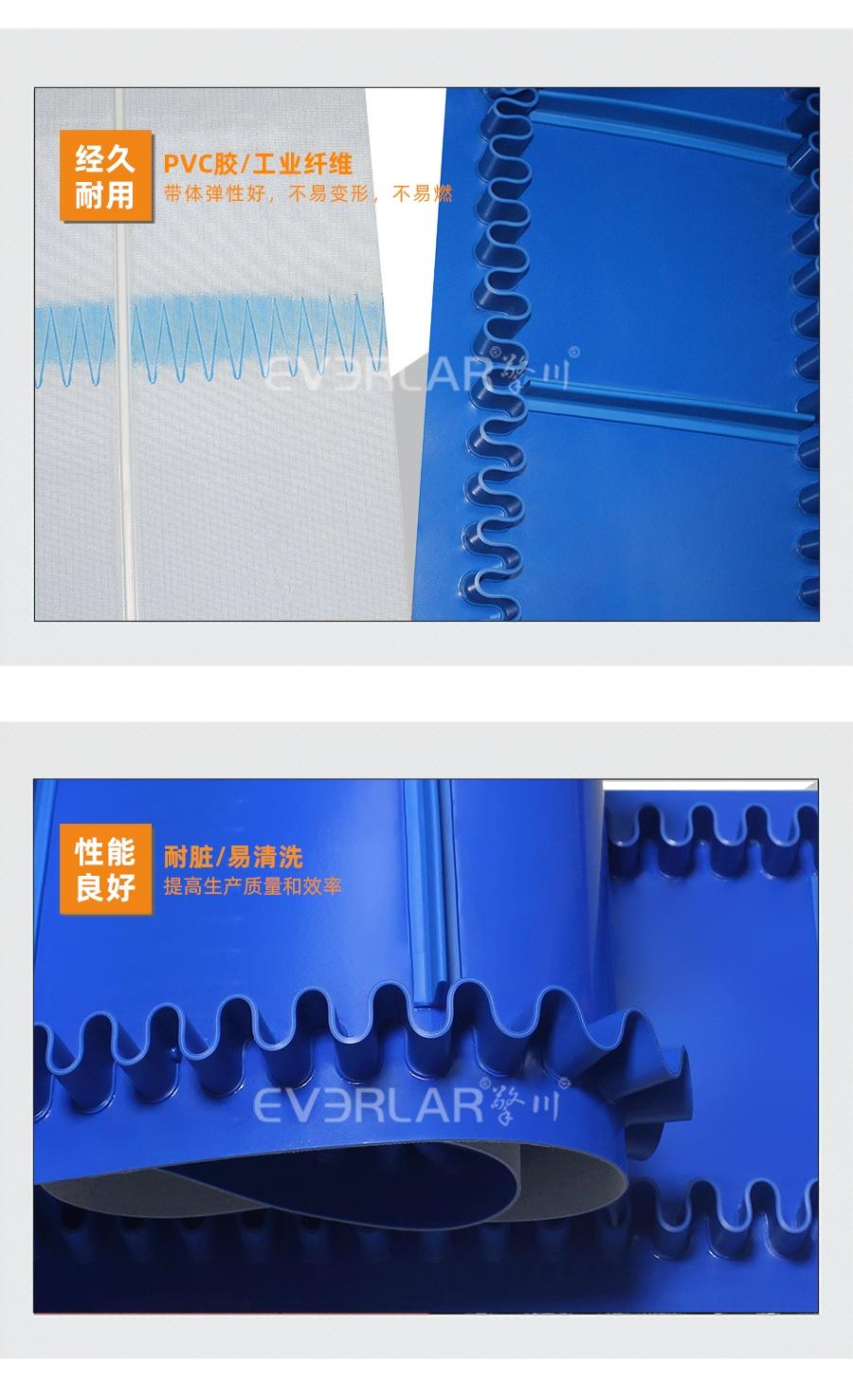 產(chǎn)品名稱(chēng):藍(lán)色PVC輸送帶加擋板裙帶