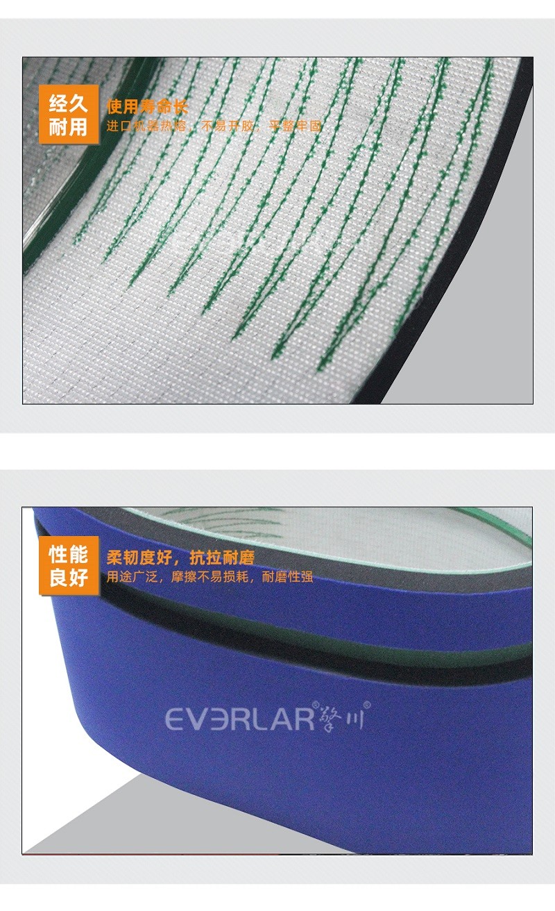 底帶厚度 | 0.7mm~4.2mm (PU) ,1.0~6.0 (PVC) ;1.5mm~5mm (硅膠)3.0mm~7.0mm ( 橡膠),需定制; 7.0mm以上(現(xiàn)貨供應(yīng)) | 應(yīng)用范圍 | 1、貼標(biāo)機(jī)做卷瓶帶使用,壓緊標(biāo)簽; 2、糊盒機(jī)..上用作壓盒帶; 3、電子元件的電鍍上用掩膜帶; |