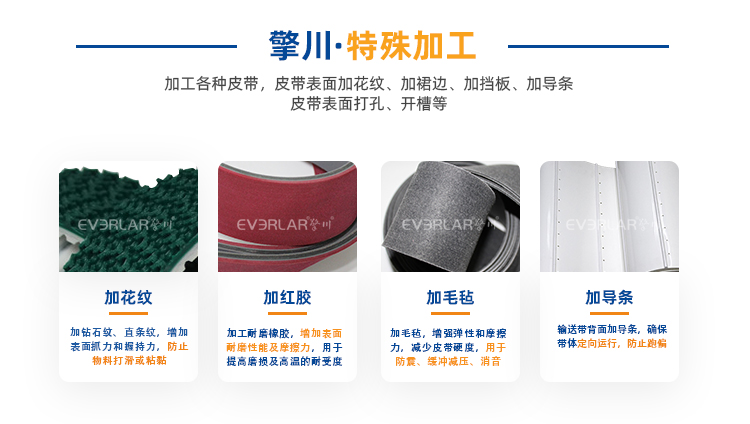 廣州擎川機(jī)電設(shè)備有限公司成立于2007年, 創(chuàng)立自有品牌EVERLAR,是一家集合研制、設(shè)計(jì)、加工為一體的工業(yè)皮帶特殊加工公司,主要經(jīng)營各類輸送帶、同步帶、平面帶、特殊皮帶加工服務(wù)(表面加工海綿、泡棉、紅膠、PU、PVC花紋、各種異形檔塊、打孔等),產(chǎn)品被廣泛應(yīng)用在食品、日化、醫(yī)藥、木工、印刷、包裝等行業(yè)……【查看更多】 |