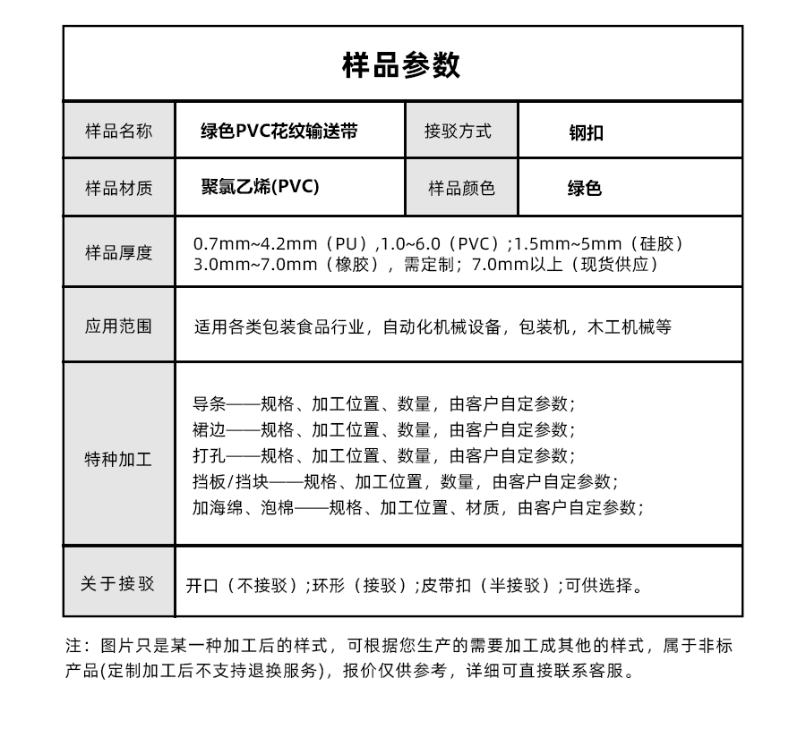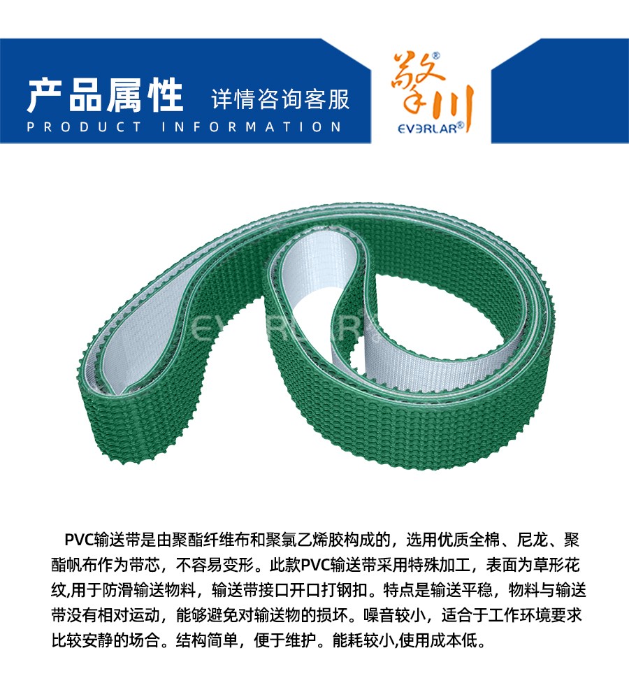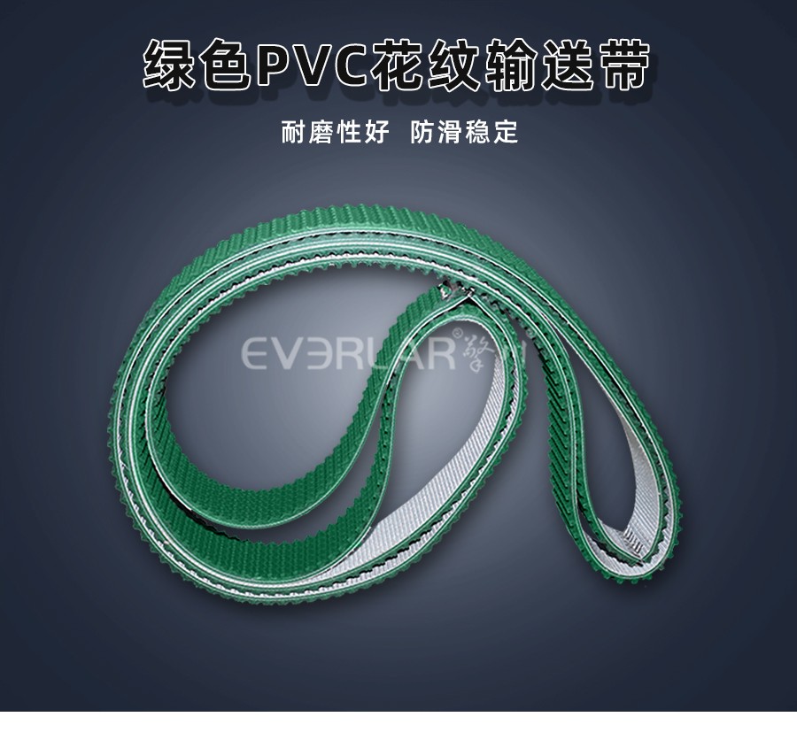產(chǎn)品名稱(chēng):擎川everlar定制PVC輸送帶綠色花紋加鋼扣