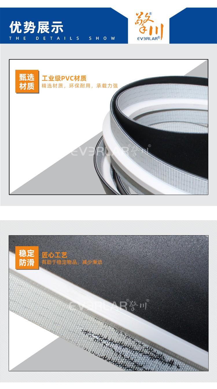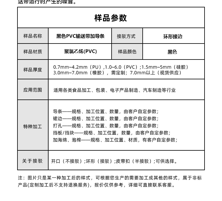 • 產(chǎn)品名稱:黑色PVC輸送帶加導(dǎo)條耐油耐腐蝕耐高溫工業(yè)皮帶定制