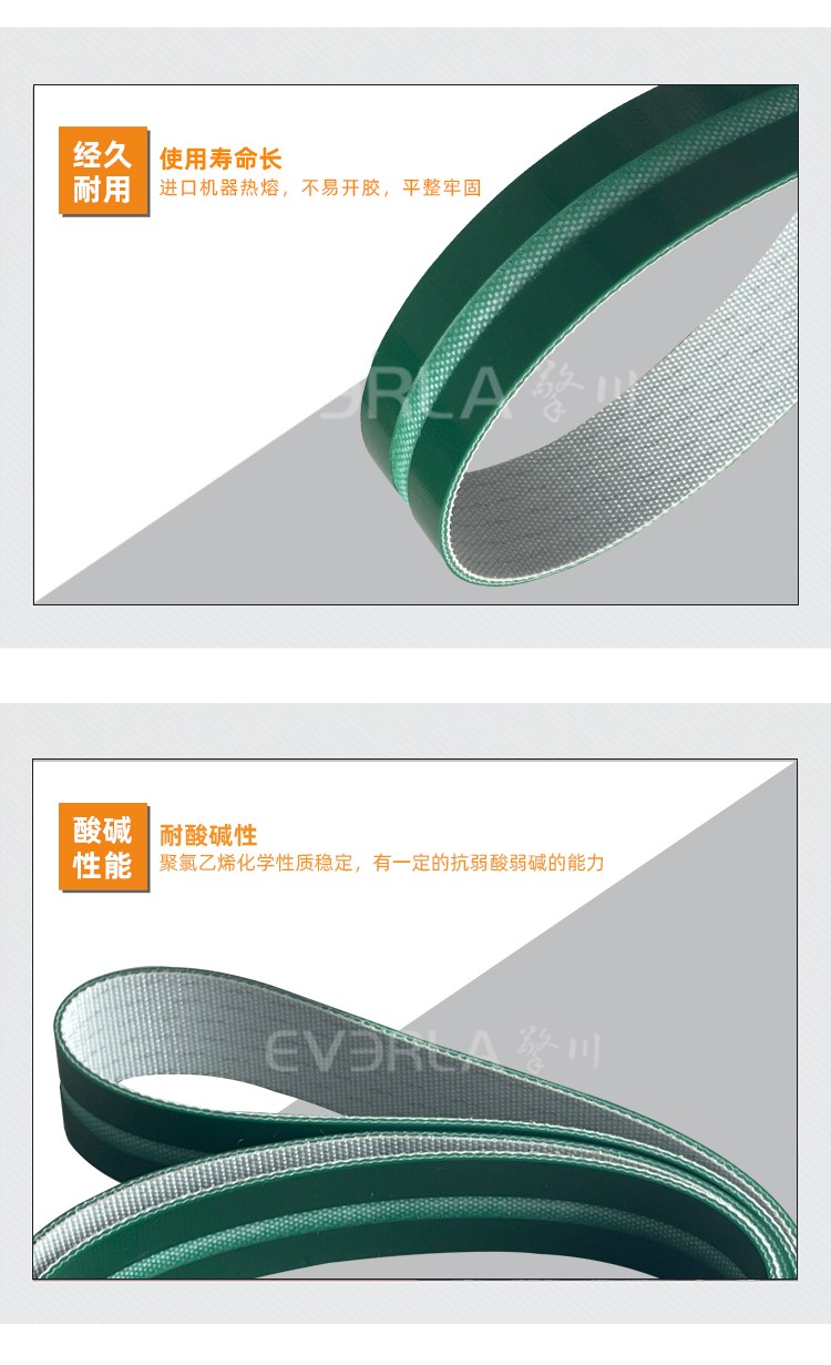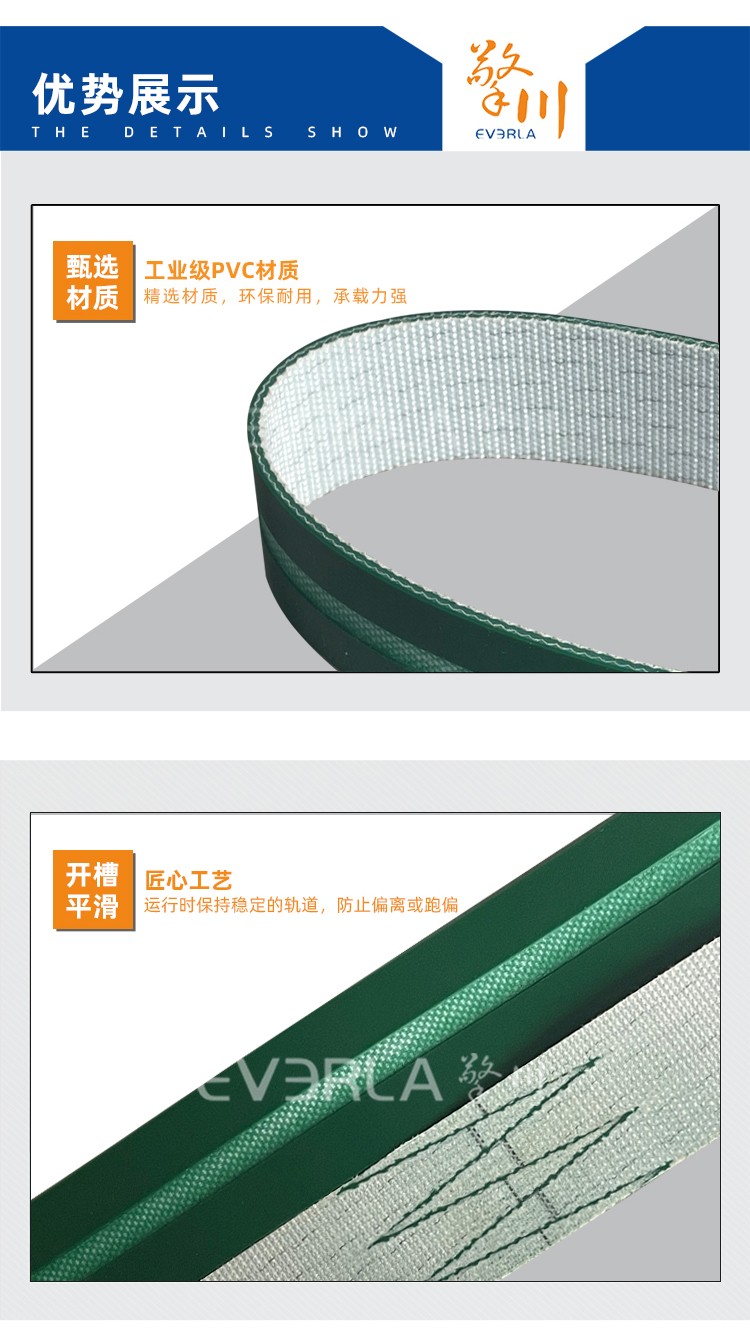 產(chǎn)品名稱(chēng):綠色PVC輸送帶開(kāi)槽耐磨耐寒防靜電工業(yè)皮帶