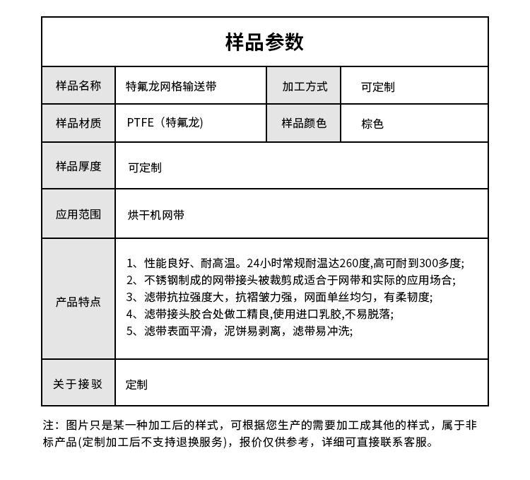 產(chǎn)品名稱:鐵氟龍網(wǎng)格輸送帶防火耐腐蝕耐高溫工業(yè)皮帶