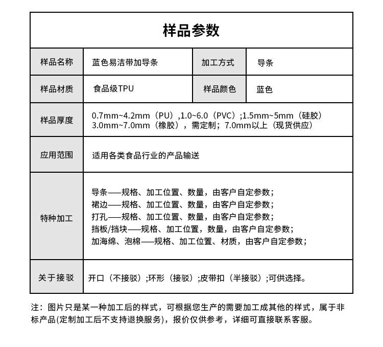 產(chǎn)品名稱:易清潔輸送帶耐磨耐油易清潔工業(yè)皮帶