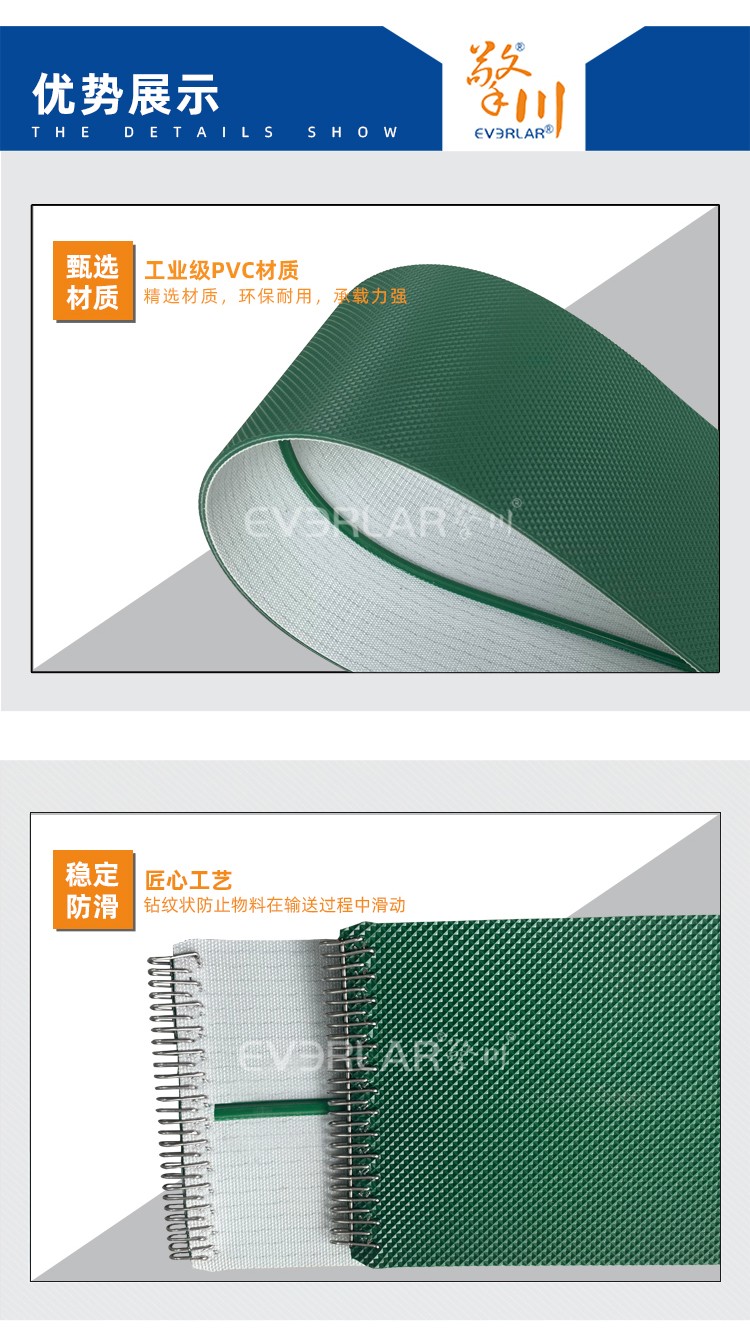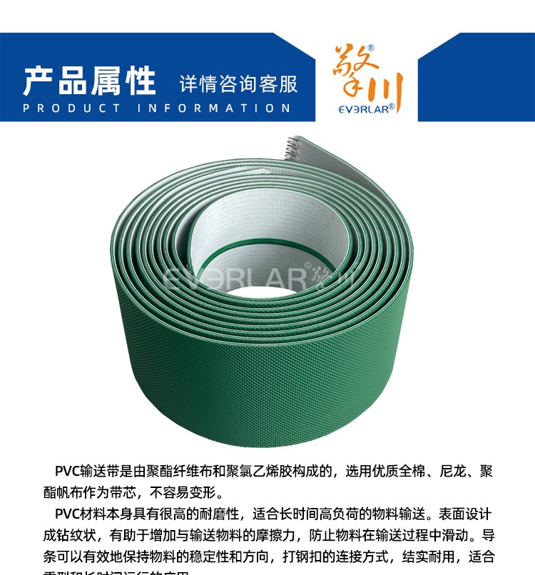 • 產(chǎn)品名稱:鉆紋PVC加導(dǎo)條打鋼扣耐磨平穩(wěn)防滑工業(yè)皮帶