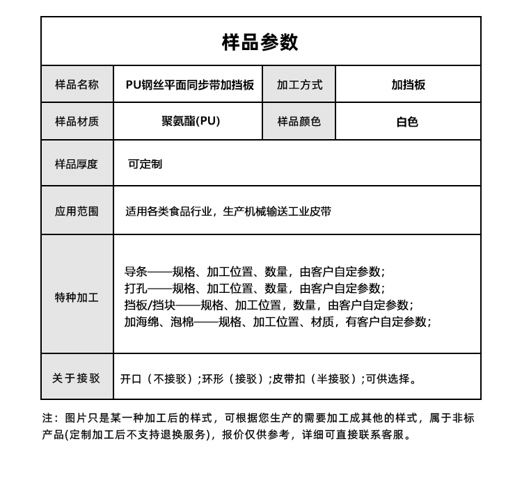 • 耐磨耐油、傳動穩(wěn)定、擋板防偏移